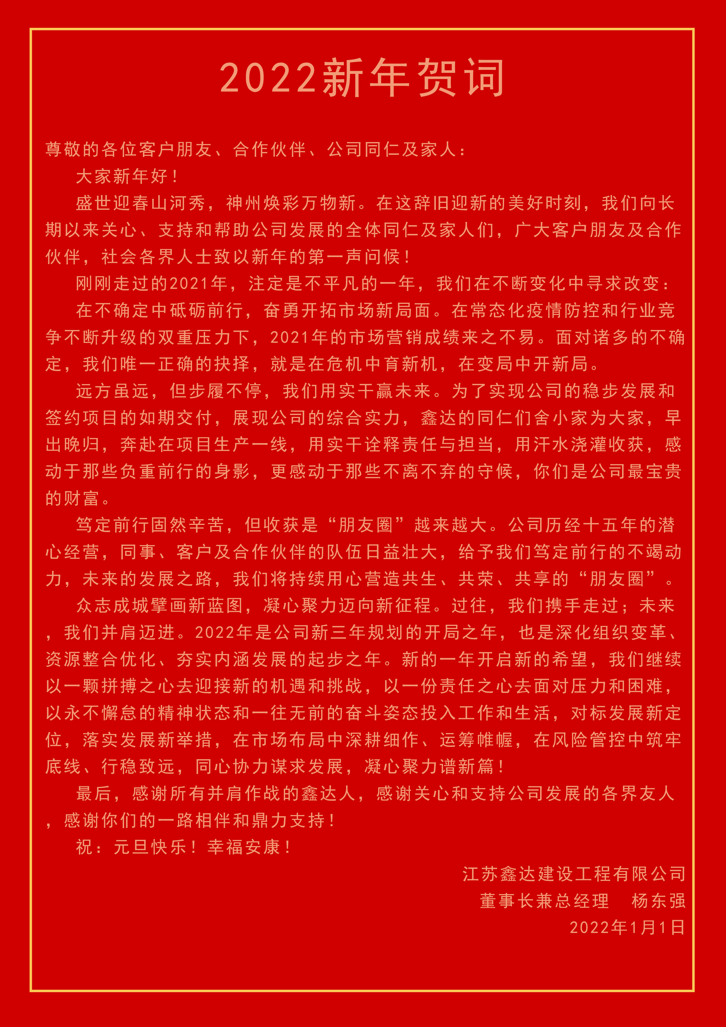 新年賀詞 | 對標新定位 謀劃新發展(2022年新年賀詞)